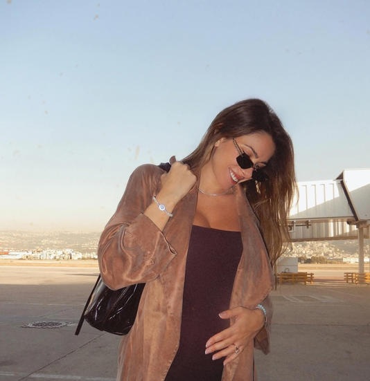 م تكتمل إطلالتها من دون الإكسسوارات الفخمة الناعمة؛ فقد ارتدت سواراً ماسياً ونظارات شمسية صغيرة، وأضفت حقيبة يد لامعة من دار Fendi لمسة من العصرية، محوّلة الإطلالة من يومية بسيطة إلى مظهر أنيق ومتكامل. هذه الإطلالة تعكس كيفية تحويل ملامح التغيير الطبيعي أثناء الحمل إلى عنصر جمالي يبرز أنوثة المرأة وجمالها الداخلي والخارجي.
