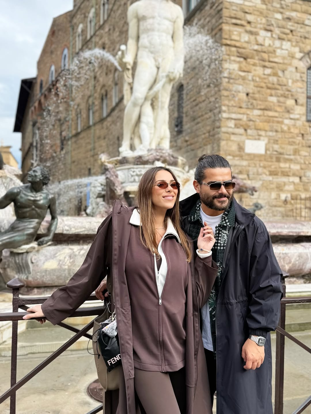 استغل الزوجان تواجدهما في إيطاليا لزيارة أبرز المعالم السياحية، من البانثيون وساحة Piazza della Rotonda في روما إلى كاتدرائية سانتا ماريا ديل فيوري وساحة سينيوريا في فلورنسا، وسط أجواء احتفالية رومانسية.