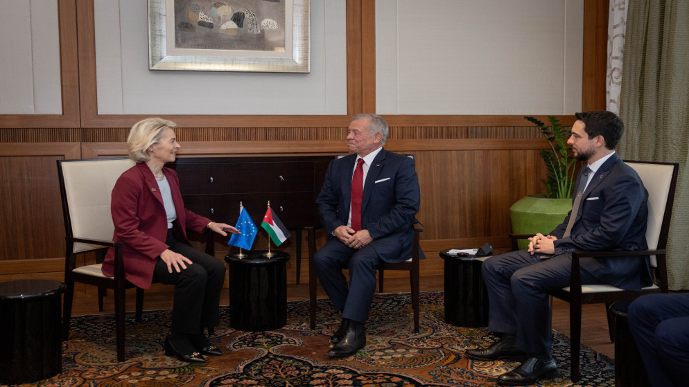 وأشار جلالته خلال لقائه مع رئيسة المفوضية الأوروبية، إلى أهمية إدامة التنسيق مع الاتحاد الأوروبي حيال المستجدات في المنطقة، بما يخدم المصالح المشتركة ويحقق الأمن والاستقرار.