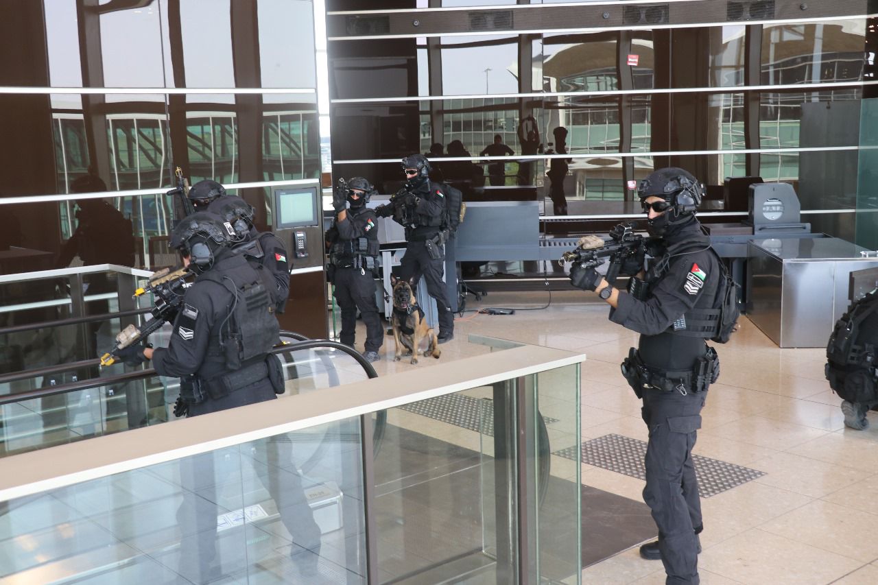 للعلّم - نفذت مديرية أمن وحماية المطارات، الثلاثاء، تمريناً أمنياً، بمشاركة الكتيبة الخاصة/71 والأجهزة الأمنية العاملة في مطار الملكة علياء الدولي، بحضور مدير أمن وحماية المطارات.