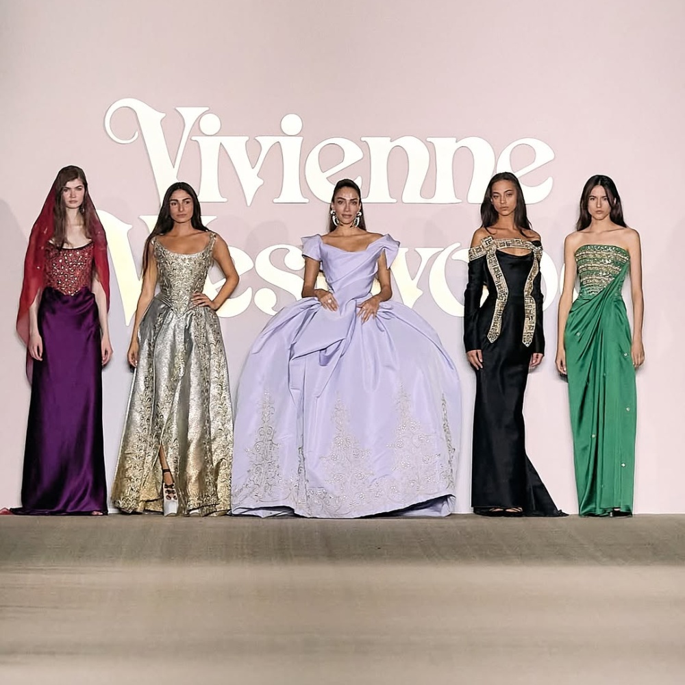 عرضت دار الأزياء العالمية فيفيان ويستوود لأول مرة في الشرق الأوسط ضمن النسخة الثالثة من أسبوع الموضة في الرياض، بالتعاون مع فنون التراث، حيث جسّد العرض تلاقي الحِرَف السعودية والإبداع البريطاني. وشمل مجموعة كبسولة من فساتين الكوتور الراقية المطروزة، إلى جانب إطلالات الدار لموسم ربيع وصيف 2026 وبعض الأعمال الأرشيفية، وسط ديكور مستوحى من أشجار النخيل، رمز الحياة والصمود في الثقافة السعودية، ما أضفى بعدًا ثقافيًا وفنيًا مميزًا على العرض.