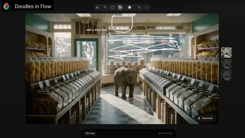 الاعتماد على "الخربشة" بدل النصوص: يكفي رسم خطوط أو أشكال بسيطة فوق الصورة، ليحول Flow هذه الرسومات إلى تعليمات تُطبق داخل الفيديو النهائي.