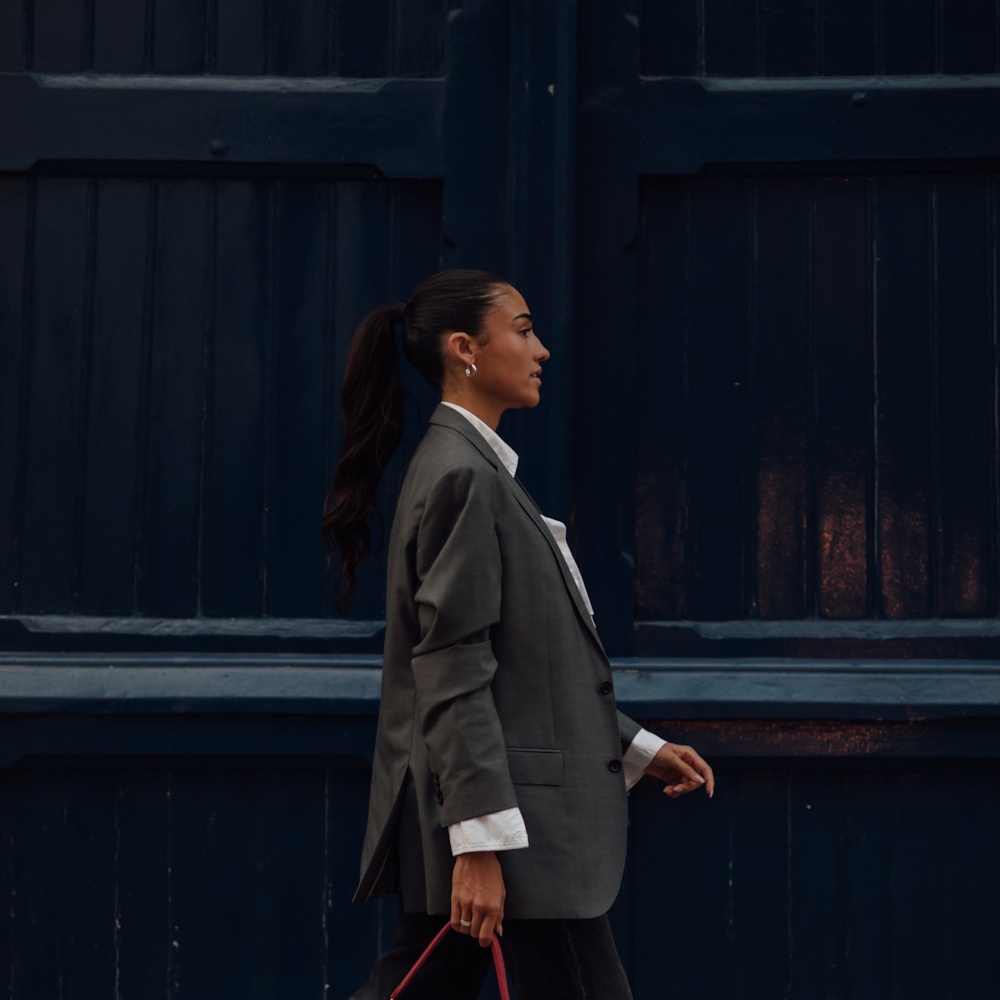 لإطلالة عملية وعصرية تناسب الأيام العادية، اختاري بلايزر واسعة نسبيًا ونسقيها مع سروال دنيم أو ملابس رياضية. إضافة كروب توب تحت البلايزر تمنحك لمسة شبابية وعصرية. يمكن ارتداء حذاء أسود بسيط لإكمال الإطلالة اليومية. هذا الأسلوب مناسب للخروجات النهارية ويعطي شعورًا بالراحة دون التنازل عن الأناقة.
