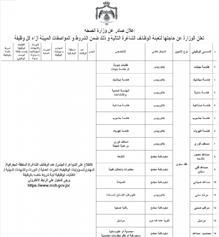 للعلّم - أعلنت مؤسسات حكومية اليوم الأربعاء، عن وظائف شاغرة ضمن شروط محددة.