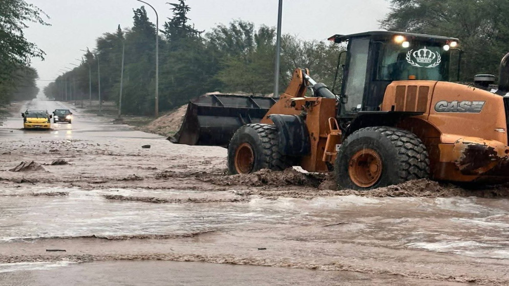 وقال متصرف اللواء رئيس لجنة الطوارئ، خالد الكساسبة، إن آليات فرق الطوارئ من بلدية معاذ بن جبل والأشغال العامة ومجلس الخدمات المشتركة والدفاع المدني، عملت على إزالة الحجارة والطمي الذي تراكم على أجزاء من الطريق وتصريف المياه التي غمرتها.