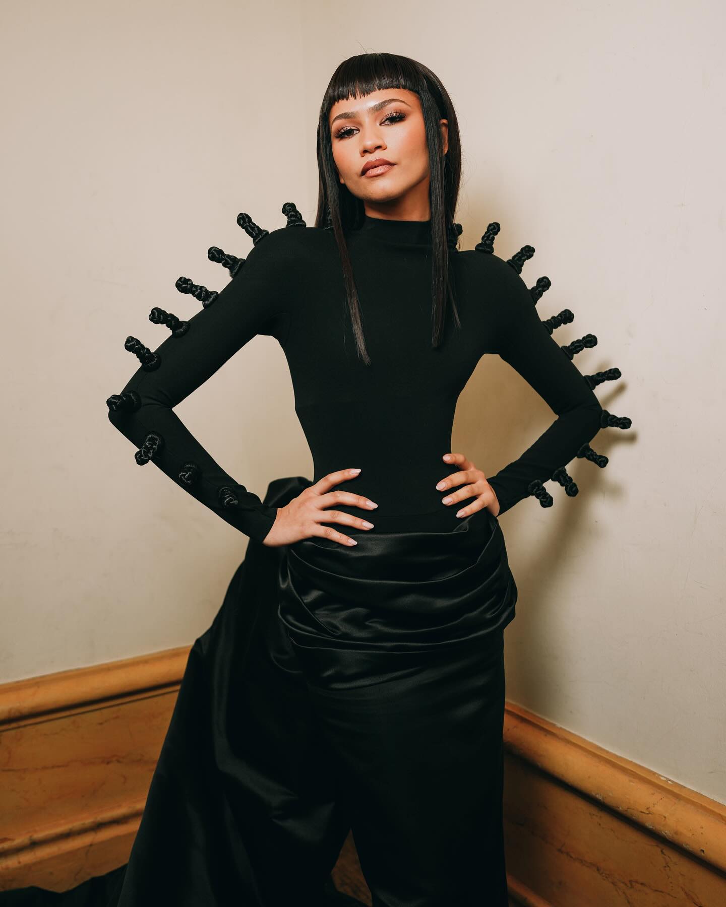 في المقابل، لا تخشى زيندايا الخروج عن المألوف، بل تجعله توقيعها الخاص. في حفل ميت غالا، أطلت بفستان أخضر زمردي لامع، مزين بعناصر مستوحاة من الطبيعة، ليبدو التصميم أقرب إلى لوحة فنية متحركة. وفي إطلالة أخرى في الحفل نفسه، فاجأت الجميع بفستان أسود منفوش مع «بوكيه ورد» ضخم زيّن شعرها، في خطوة جريئة لاقت انقسامًا… لكنها ضمنت الحديث عنها.