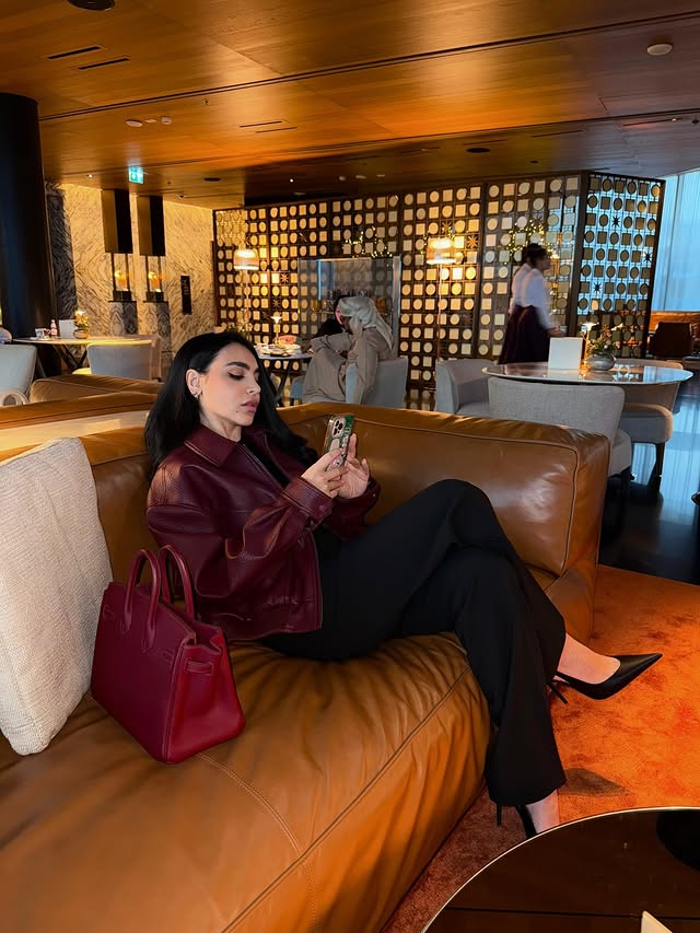 إطلالة مونوكروم سوداء بالكامل، لكن مع كسر ذكي عبر جاكيت جلدي قصير باللون البرغندي. هذا ما قدمته ناهد زيدان بأسلوب هادئ وواثق، يؤكد أن البساطة المدروسة أقوى من أي استعراض.