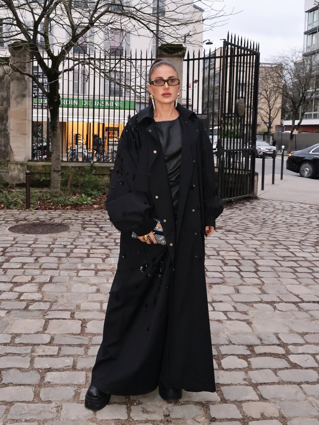 الإعلامية اللبنانية جيسيكا عازار اختارت أسلوبًا كاجوالًا دافئًا خلال عرض جورج حبيقة، مع معطف أخضر فاتح، كروب توب مزين بتطريزات، وسروال جينز بخصر عالٍ، مدعومة بحذاء مدبب وإكسسوارات متكاملة، لتثبت أن الأناقة اللبنانية حاضرة بقوة في باريس.