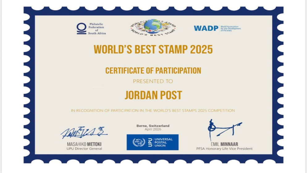 ويجسد هذا الإنجاز التزام البريد الأردني بتطبيق أعلى المعايير العالمية في التصميم والطباعة والإخراج الفني، كما يسلط الضوء على دوره في تعزيز حضور الأردن دولياً، وصون فن الطوابع بوصفه جزءاً من الهوية الثقافية والتاريخية للمملكة.