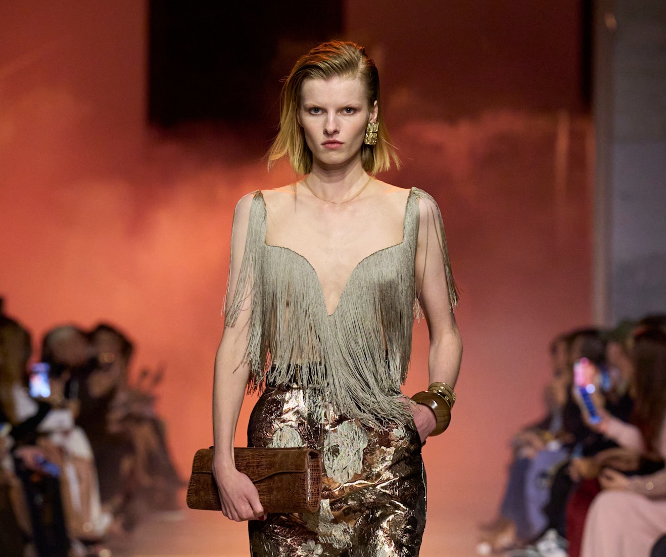 سلاسل ذهبية ناعمة تنسدل من الشعر
