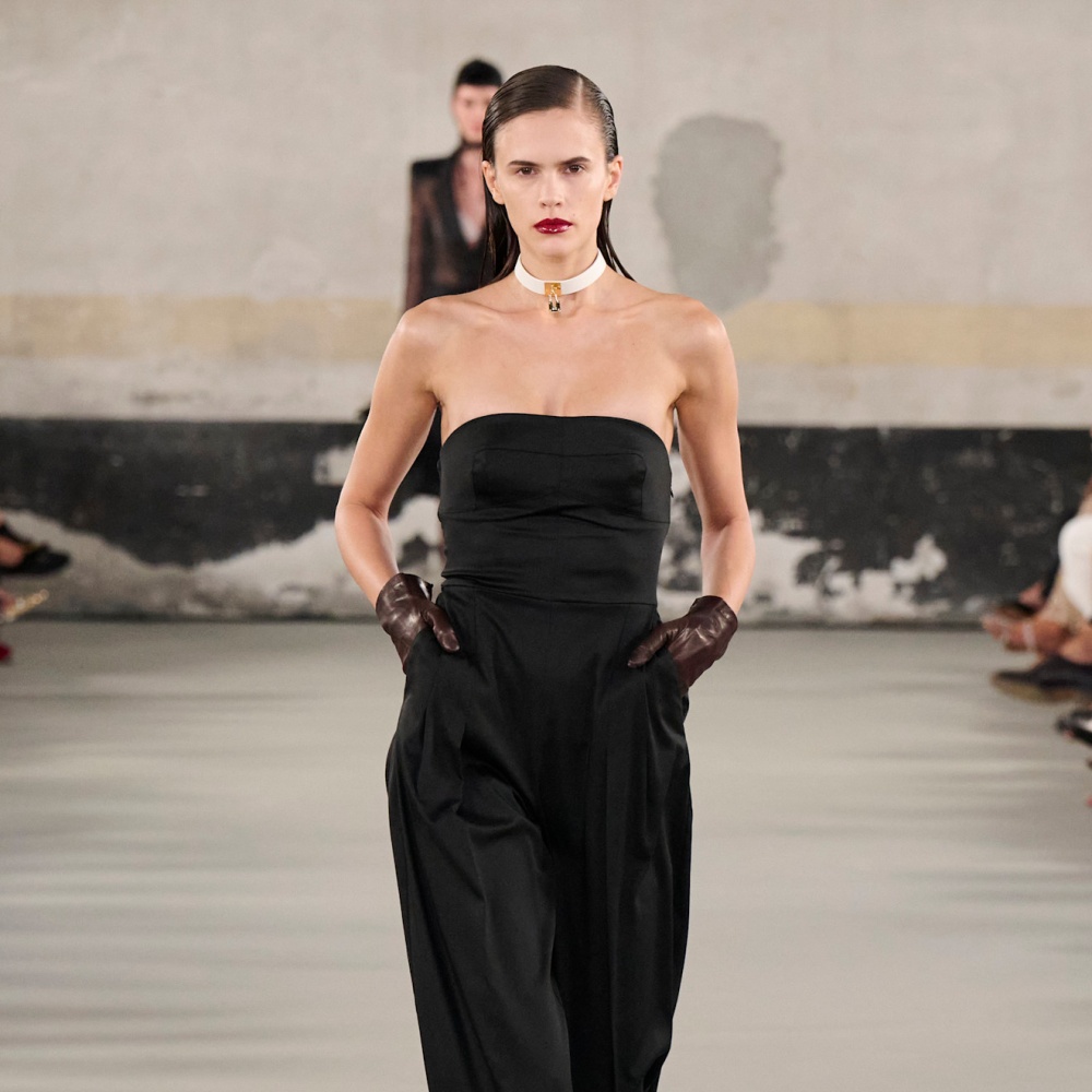 تألقي هذا الصيف بجمبسوت أسود من قماش الكريب الفاخر، مع قصّة الخصر المحدد بخطوط لماعة. هذه الصيحة تمنحكِ أناقة لافتة، خاصة مع الأكتاف المفرغة بأسلوب السترابلس المريح. الأكسسوار المثالي هنا هو الشوكر الفاخر الذي عاد بقوة إلى ساحة الموضة.