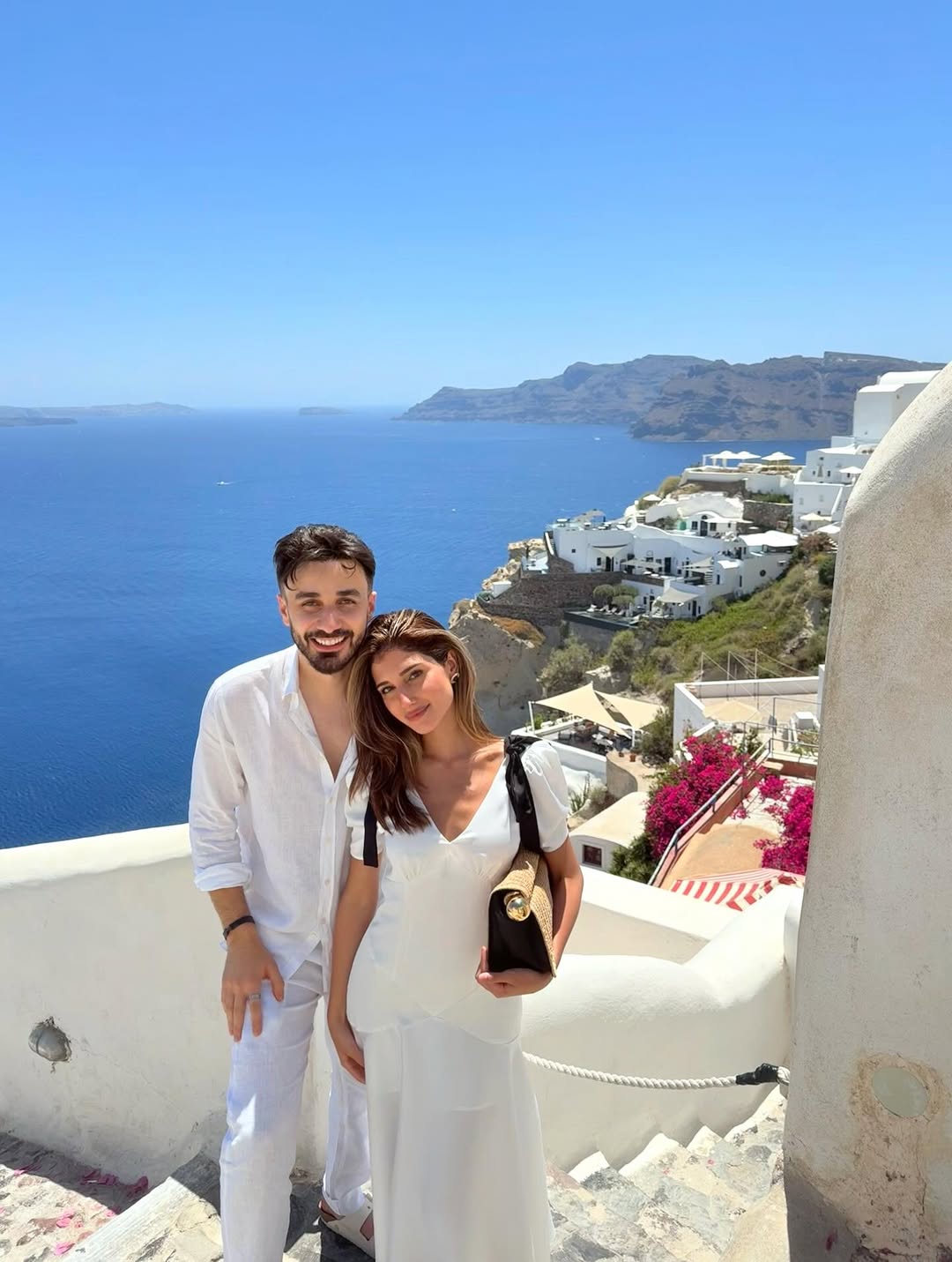 عقب وصول شيرين بيوتي إلى جزيرة سانتوريني في اليونان مع زوجها أسامة مروة، نشرت مجموعة صور جديدة ظهرت فيها وسط المباني المطلية باللون الأبيض الظاهرة في الخلفية، مع الأجواء المشرقة والمشمسة، الصور التي نشرتها شيرين عكست بوضوح البهجة والانسجام بينهما.