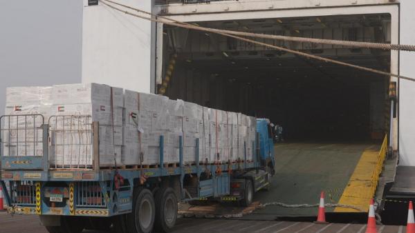 للعلّم - في إطار الجهود الإنسانية المتواصلة التي تبذلها دولة الإمارات العربية المتحدة لدعم الأشقاء في قطاع غزة، بدأ اليوم في ميناء خليفة (كيزاد) بأبوظبي تحميل سفينة خليفة للمساعدات الإنسانية رقم 8، والتي سوف تتجه إلى ميناء العريش في جمهورية مصر العربية بعد الإنتهاء من عملية التحميل، تمهيدًا لإدخال المساعدات إلى القطاع.