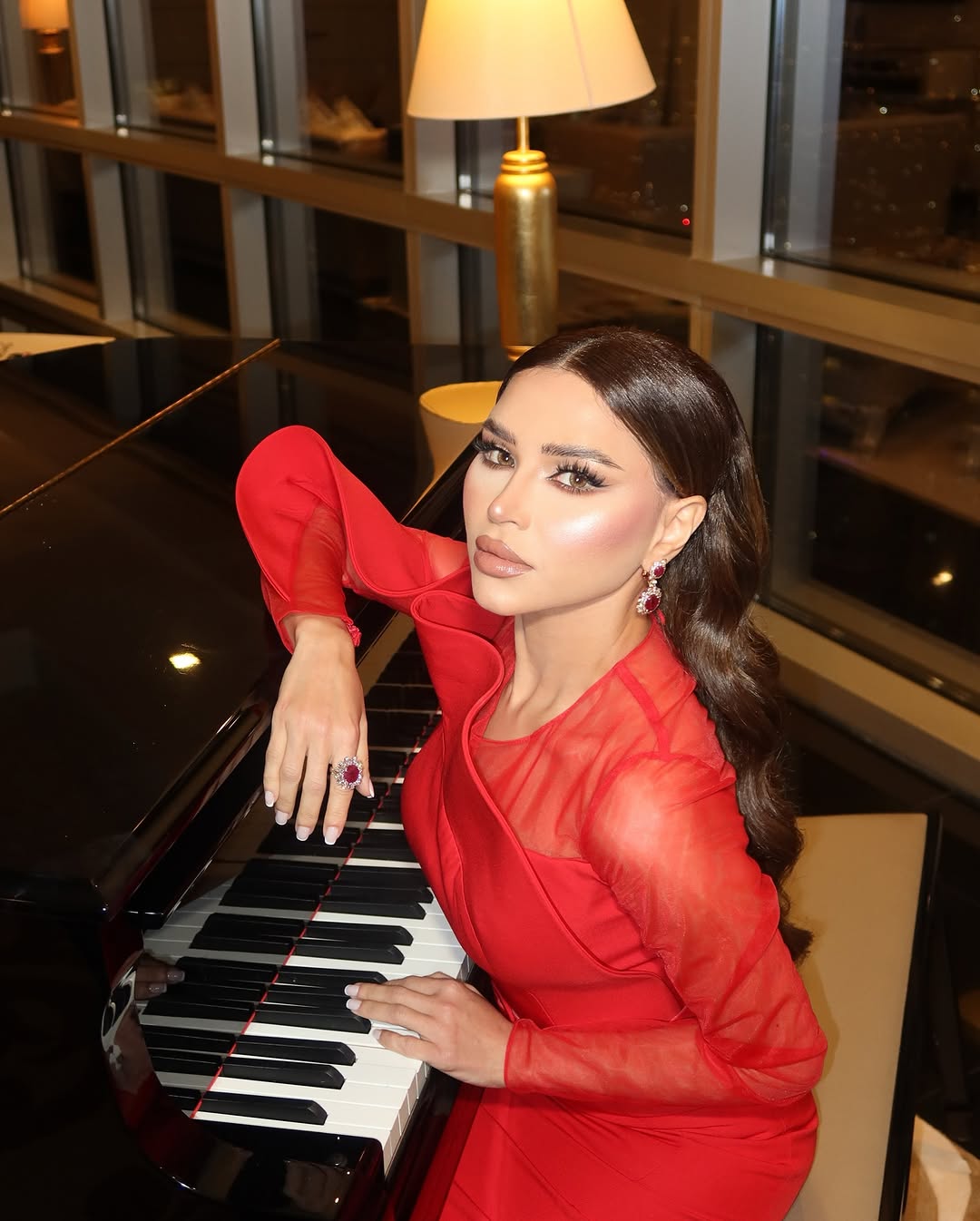 في جلسة تصوير بمناسبة عيد الحب، اختارت سيرين فستانًا أحمر وإكسسوارات مرصعة بالألماس والياقوت الأحمر من Tahan Jewelry، لتترجم مشاعر الحب والفخامة في كل تفصيل.