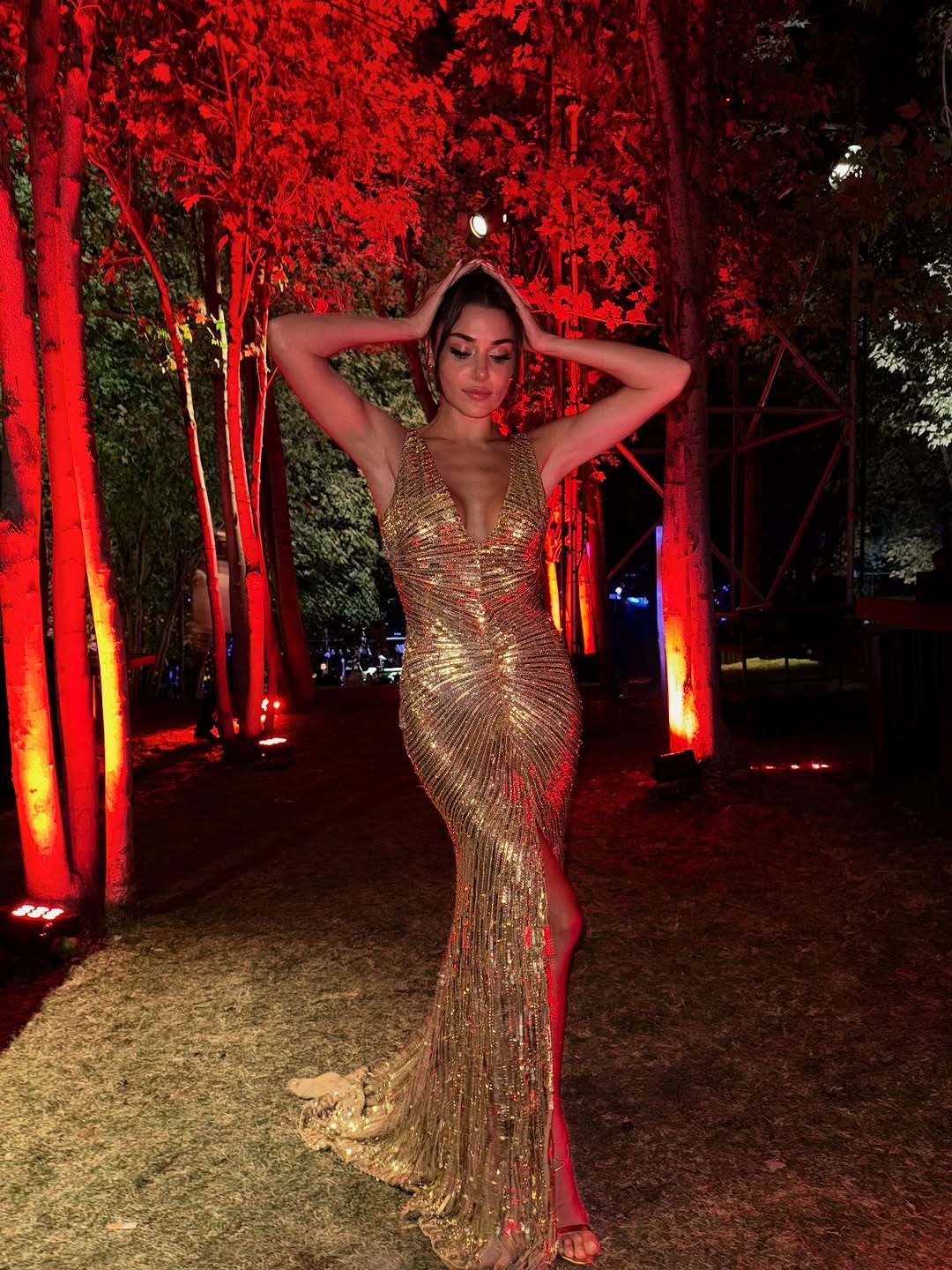 في بيروت، المدينة التي تعشق الفن والذوق، تألق هذا الثنائي التركي بإطلالة تفيض بالأناقة: هاندا بفستان ذهبي لامع وقصة جريئة، وهاكان ببدلة سوداء وقميص مفتوح الياقة. كان المشهد مثل فيلم كلاسيكي بإضاءة عصرية.