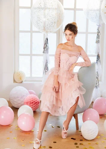 الزهري بدرجاته الناعمة، خصوصًا النيود، يمنح البشرة الزيتونية لمسة أنثوية ناعمة. اختاريه للسهرات على هيئة فساتين ساتان أو جمبسوت مثل تصاميم Elenareva لإطلالة أنيقة ومشرقة.