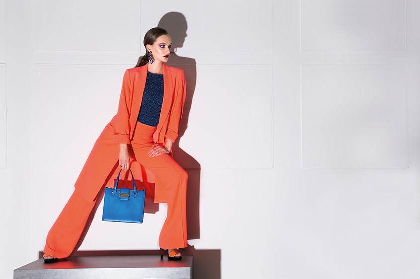 لا تستخدمي اللونين معاً بنفس القوة. اجعلي أحدهما بطلاً والآخر مساعداً. فستان أزرق؟ اختاري حقيبة برتقالية. بلوزة حمراء؟ أضيفي أقراطاً خضراء. التوازن هو السر.