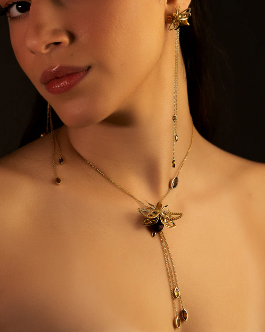 في كل قطعة من هذه المجوهرات، نجد الطبيعة وقد صيغت من ذهب وأحجار نادرة. هي ليست مجرد زينة، بل رواية من الضوء والظل، من الأمواج والعواطف، من القوة والرقة. سواء اخترت زهرةً، نحلةً، عقربًا، أو حتى ببغاء، فأنتِ ترتدين أكثر من مجرد قطعة فاخرة... أنت ترتدين فكرة، شعورًا، ومزاجًا يتبدّل ويشرق مع كل لحظة.