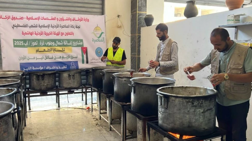 "الخيرية الهاشمية" ولجنة زكاة المناصرة تنفذان مشروع تكايا الطعام في مناطق من غزة