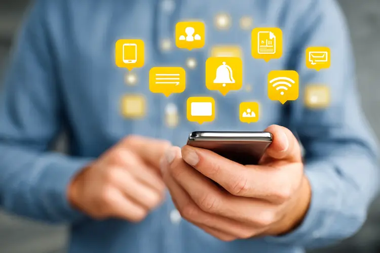هاتف ذكي يعمل بنظام أندرويد أو iOS.
