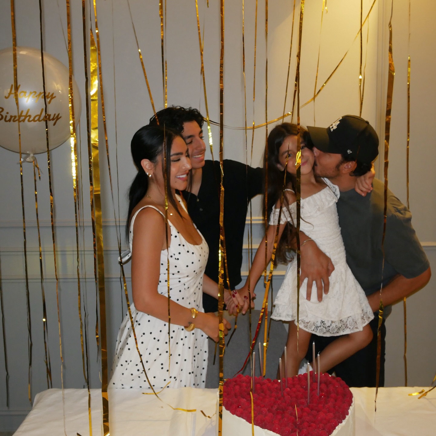 وظهرت إيزابيل بفستان أبيض أنيق مزيّن بالدانتيل، واستعرضت بعض اللحظات الرومانسية مع والديها، بما في ذلك احتضانها لباسل خياط أثناء تقبيله لها وطفئها لشمع عيد ميلادها وسط ابتسامات العائلة.