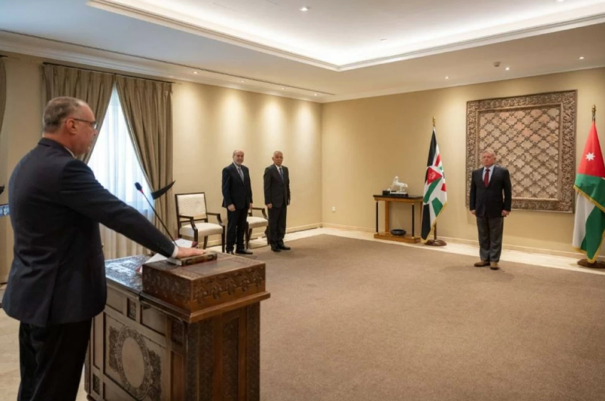 وحضر مراسم أداء اليمين رئيس الديوان الملكي الهاشمي يوسف حسن العيسوي.