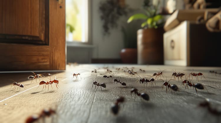 ويمكنك التخلص من النمل إما باستخدام أحد المبيدات الحشرية، أو عن طريق استخدام إحدى الوصفات المنزلية مثل مسحوق الفلفل الحار الذي يتم رشه في الأركان.