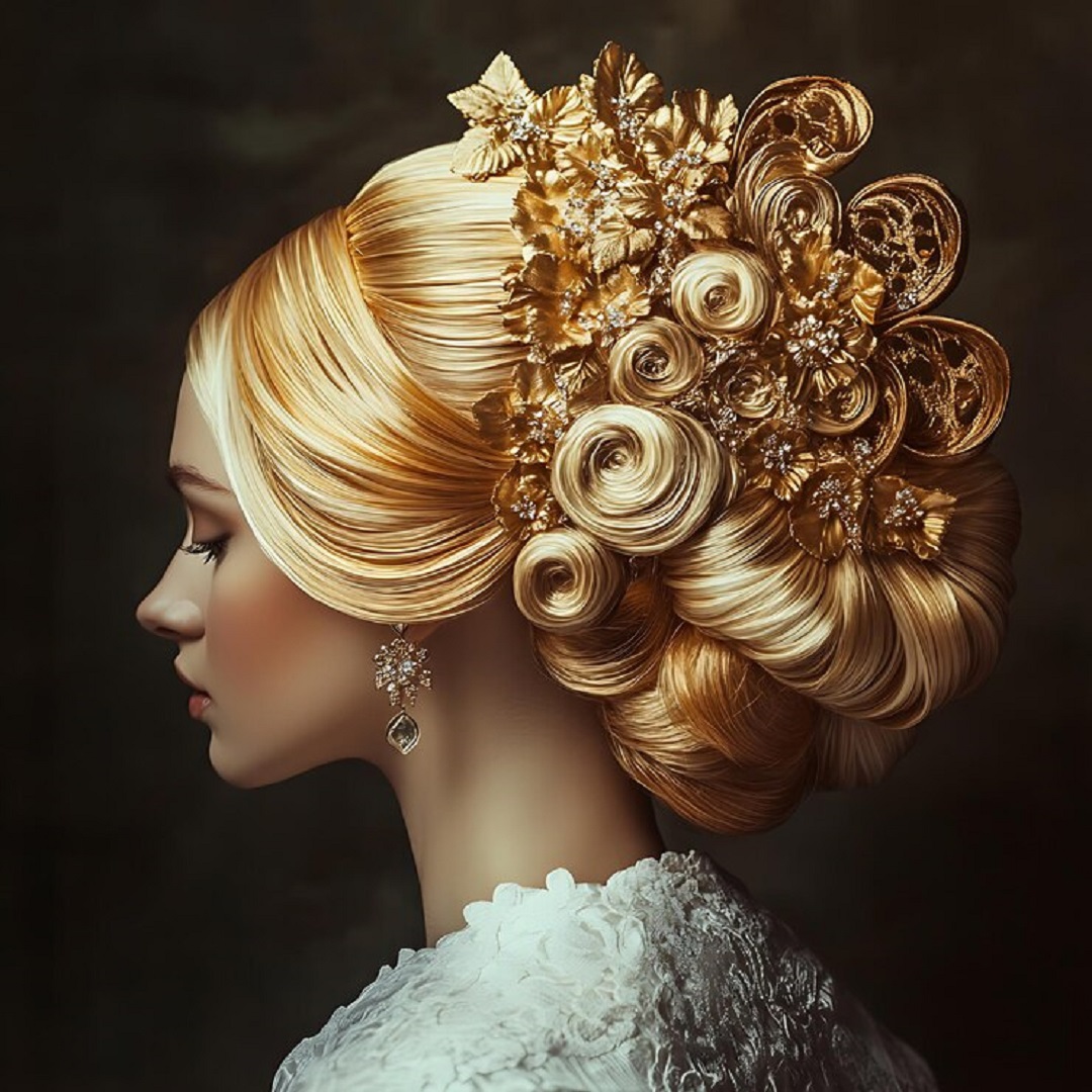 التيجان والزهور: من أبرز السمات في هذه الفترة كانت إضافة الأزهار أو الأشرطة أو التيجان الذهبية التي أضافت لمسة من الرقي ولكنها لم تكن تظهر المبالغة في حجم الشعر.