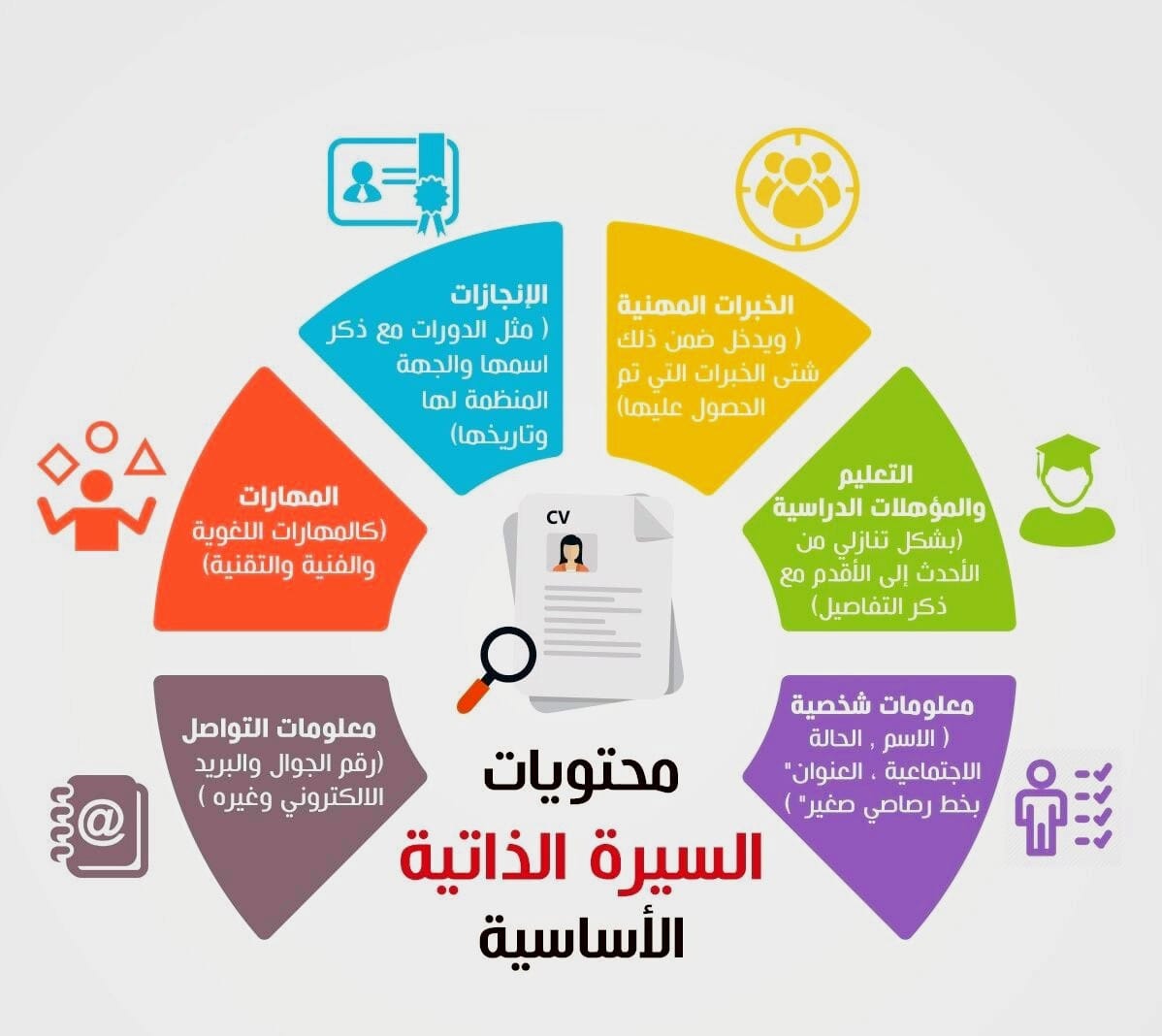للعلّم - السيرة الذاتية CV هي البوابة الأولى أمام أي صاحب عمل للتعرف عليك، وهي الأداة التي تعكس خبراتك ومهاراتك ومؤهلاتك بطريقة منظمة وواضحة. ولكي تكون سيرتك الذاتية فعالة، هناك عناصر أساسية يجب أن تحتويها بشكل دقيق ومنسق: