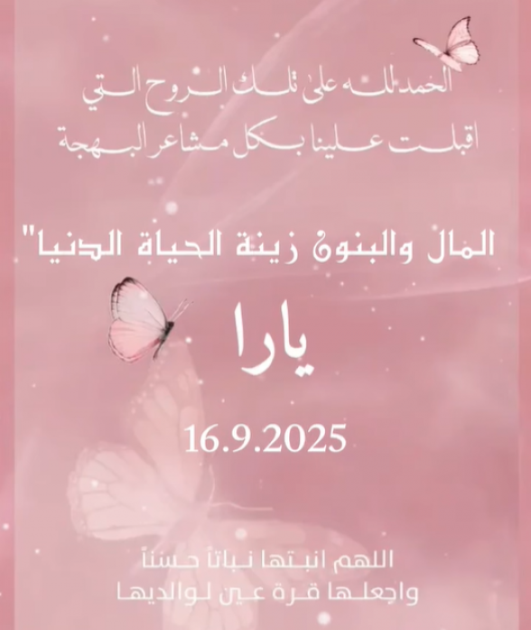 للعلّم - الاهل والأصدقاء والأقارب يهنئون محمد علي عيسى الشلول بقدوم مولودته الأولى "يارا".