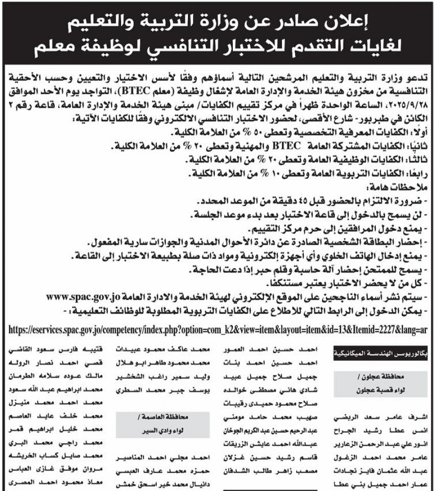 كما اعلنت وزاؤات ومؤسسات اسماء المدعوين لاجراء المقابلات الشخصية والامتحان التنافسي في وظائف معلن عنها سابقا.