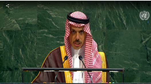 وأضاف بن فرحان، خلال كلمة السعودية في مؤتمر حل الدولتين، نيابة عن ولي العهد السعودية سمو الأمير محمد بن سلمان بن عبدالعزيز آل سعود، أن المؤتمر ينعقد في ظل العدوان والجرائم الوحشية من قبل إسرائيل في قطاع غزة والانتهاكات في الضفة الغربية والقدس المحتلة، وعدوانها على المنطقة وآخرها العدوان الغاشم الذي استهدف قطر.
