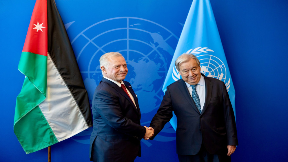 للعلّم - وجه جلالة الملك عبدﷲ الثاني لدى لقائه مع الأمين العام للأمم المتحدة أنطونيو غوتيريش في نيويورك، الثلاثاء، نداء طالب فيه دول العالم أجمع بوقف المأساة الإنسانية في غزة.