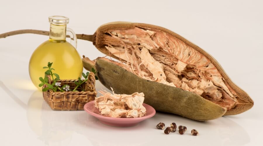 شجرة الباوباب شجرة موطنها الأصلي أفريقيا، تنمو في السافانا، وتتميز بقدرتها الفائقة على التكيف، حيث تعيش بعض الأشجار لآلاف السنين. ورغم هذه البيئة القاسية والجافة، تُركز الشجرة عناصرها الغذائية بذكاء لضمان بقائها طويلًا، خاصةً خلال موسم الجفاف، ومن هنا جاء اسمها الأفريقي "شجرة الحياة". كما يمكنها تخزين كميات كبيرة من الماء في جذعها، مما يُسهم في زيادة محتواها من الزيت، ولذلك تمضغ الأفيال وغيرها من الحيوانات البرية لحائها خلال موسم الجفاف. يُعد لب ثمرة الباوباب، المُستخرج كمسحوق مجفف، مكونًا مفضلًا في علاجات الصحة والتجميل لآلاف السنين.