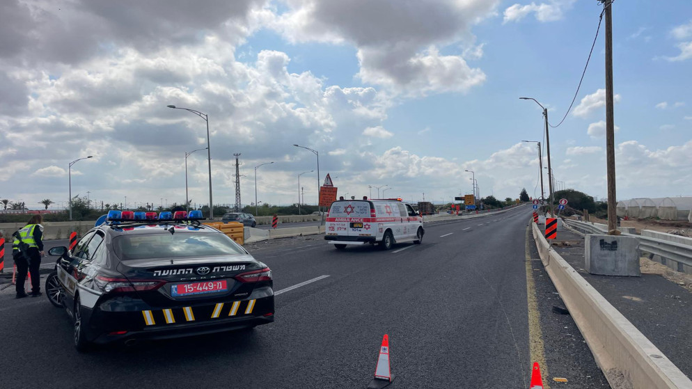 وذكر الإسعاف الإسرائيلي أن المسعفين يقدمون العلاج لرجل مصاب في موقع الانفجار.