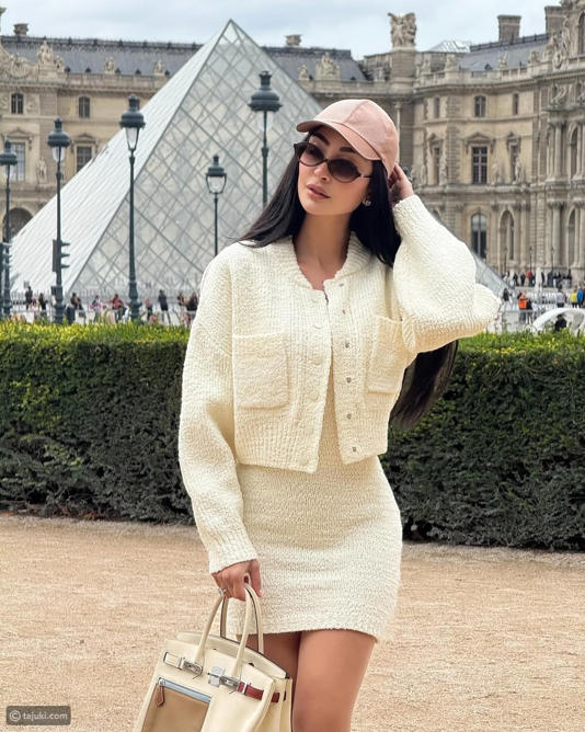 جمهورها بستايل كاجوال أنيق جمع بين البساطة والفخامة. ورغم اعتمادها على أزياء محايدة باللون الكريمي من تنورة قصيرة وجاكيت بتفاصيل واسعة، إلا أن سر التميّز كان في اختيارها قبعة بيسبول باللون الوردي الفاتح، التي أضافت حيوية إلى الإطلالة ومنحتها طابعاً عصرياً لافتاً.