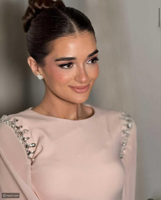 أما من الناحية الجمالية، فقد حرصت ملك زاهر على اختيار مكياج ناعم يتناغم مع بساطة لون الفستان ورقيه، وقد ارتكز المكياج على إبراز جمال ملامحها الطبيعية دون مبالغة، حيث وضعت أحمر شفاه باللون الوردي الهادئ، والذي عزز من المظهر الأنثوي المريح للإطلالة الوردية بالكامل، كانت لمسات المكياج موفقة في تحقيق التوازن، بحيث لم تطغَ على تفاصيل الفستان المعقدة.