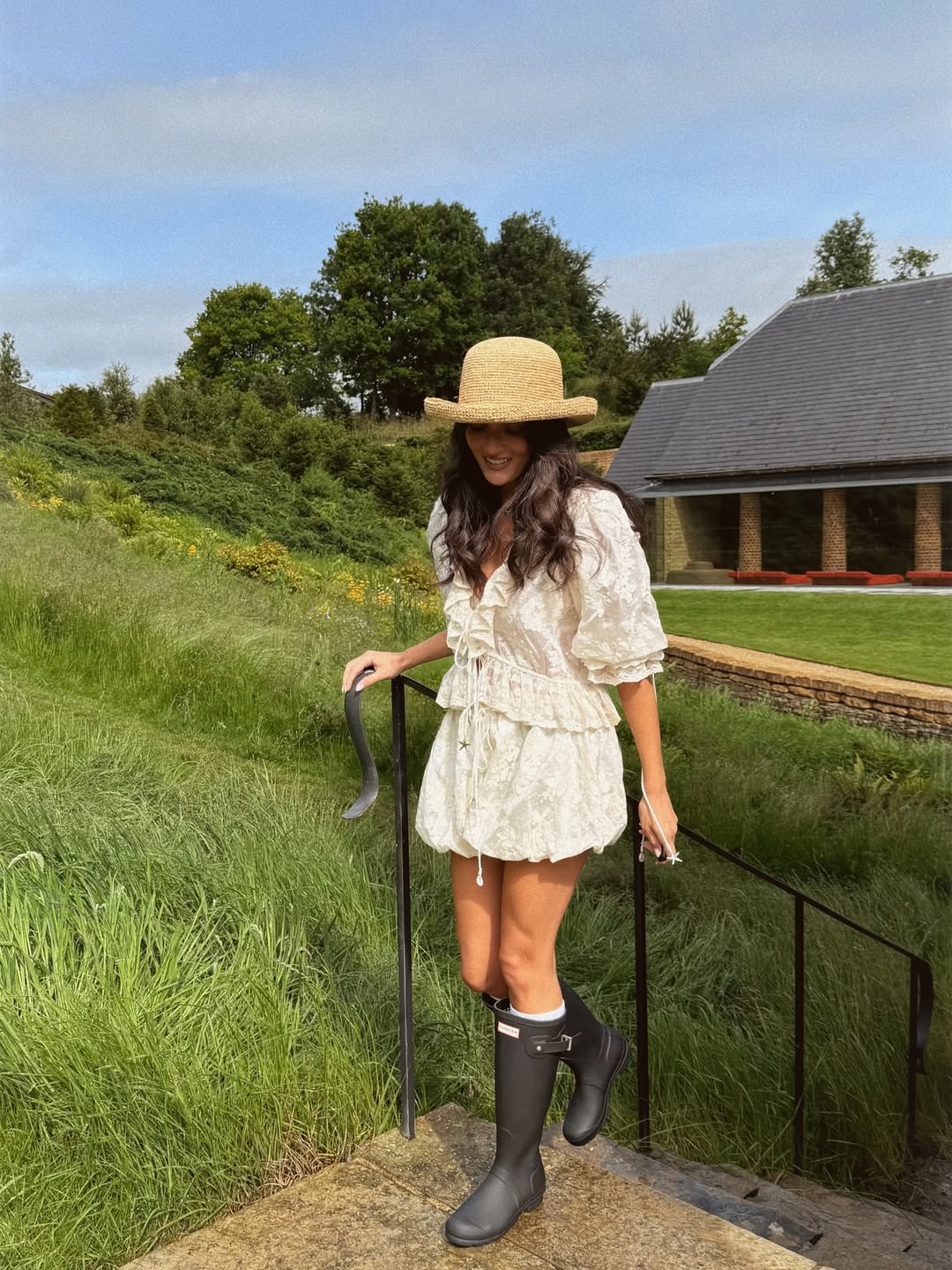 رينيه فرح مزجت بين الستايل البوهيمي والفخامة بارتداء فستان زهري مكشكش مع قبعة قش من MiuMiu وبوت بالشراشيب. أما ياسمين زهران فاعتمدت فستاناً عاجياً مطرزاً بالورود وأكملته بقبعة قش مستديرة منحتها لمسة رومانسية ناعمة.
