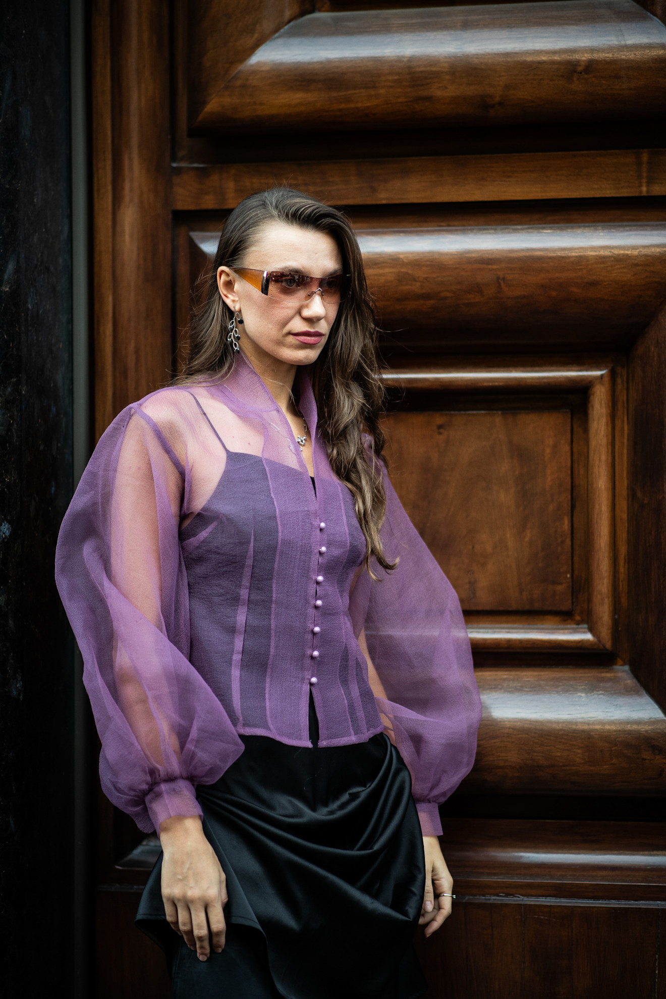 اكتفي بـ إكسسوارات محدودة، فالأكمام وحدها كافية لتكون محور الإطلالة.