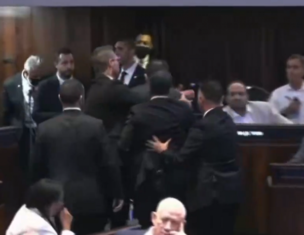 للعلّم - أخرج الأمن الإسرائيلي اليوم الإثنين، نائبان في الكنيست الإسرائيلي خلال إلقاء الرئيس الأمريكي دونالد ترامب خطابه في تل أبيب.