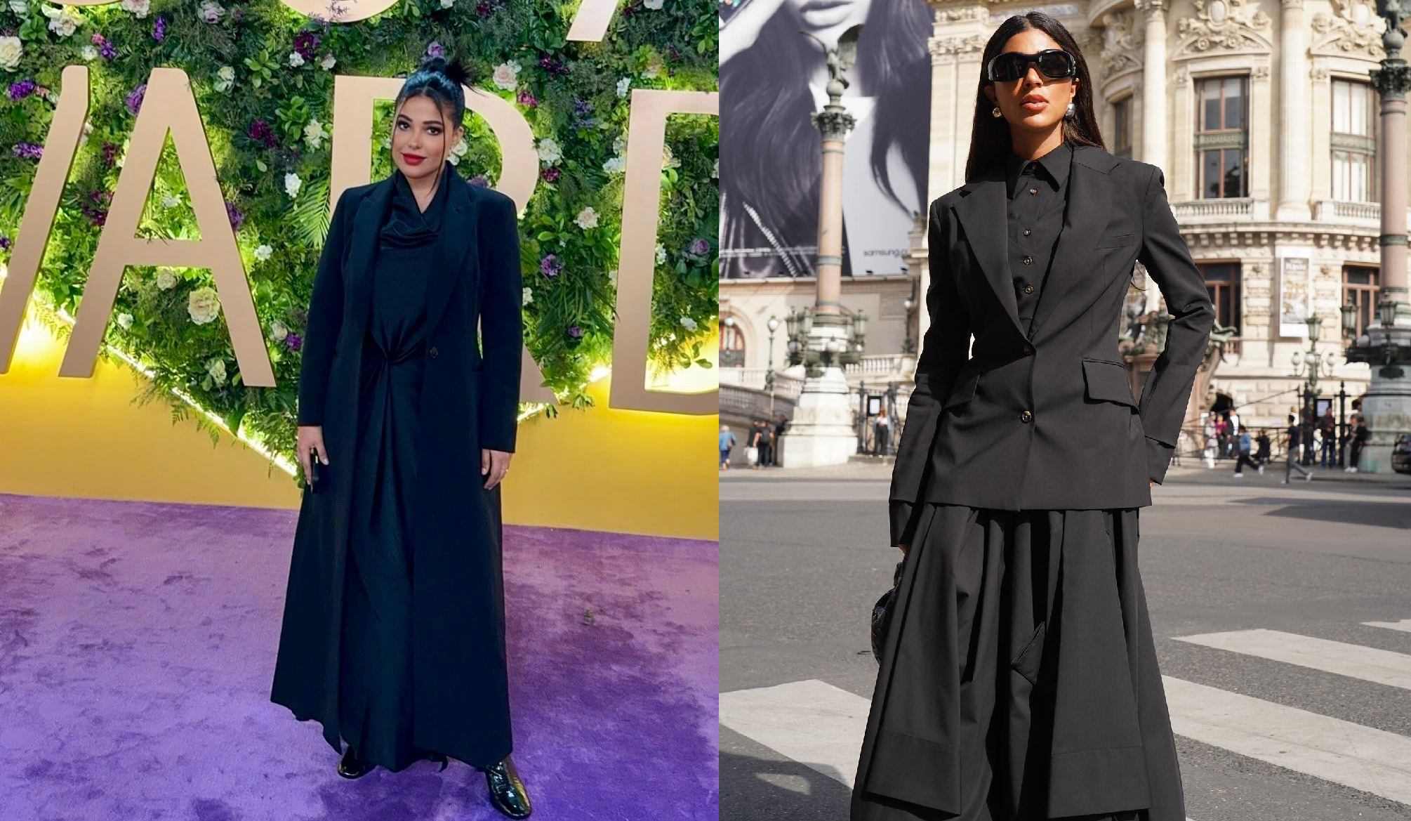 وفي ظهور آخر، تألقت لولوة بفستان أسود طويل ومعطف داكن من الخامة نفسها، ما منحها فخامة هادئة ورصانة في الأسلوب، بينما فضّلت ليلى الأسود أيضاً ولكن بطريقة عصرية مستوحاة من أسلوب البدلات النسائية، إذ ارتدت سترة أنيقة بأزرار ذهبية فوق تنورة واسعة لتبرز جرأتها في مزج الأساليب الكلاسيكية بالعصرية.