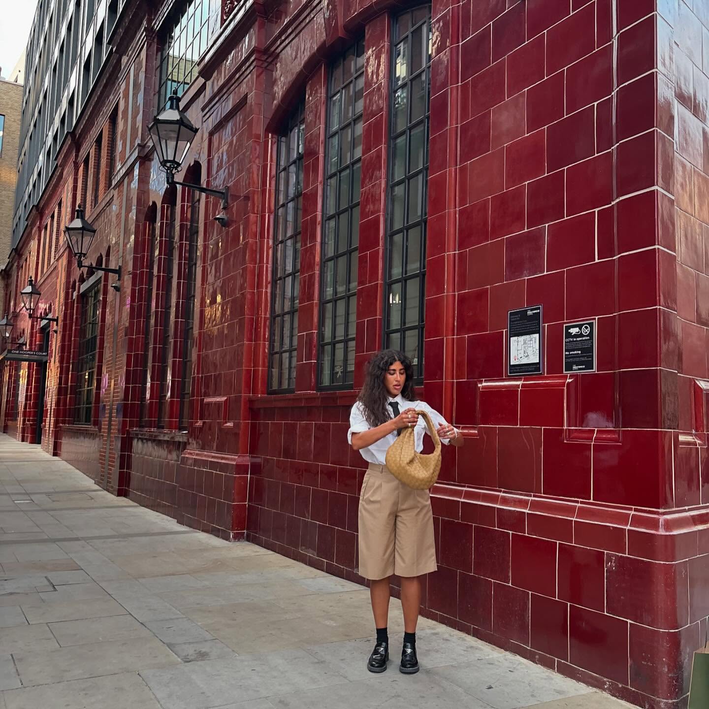 وفي إطلالة أخرى، فضلت الأسلوب الكاجوال الأنيق بارتداء قميص أبيض بسيط وشورت بيج طويل مع حقيبة بلون متناغم وحذاء أسود عصري يمنحها طابعاً شبابياً حيوياً.