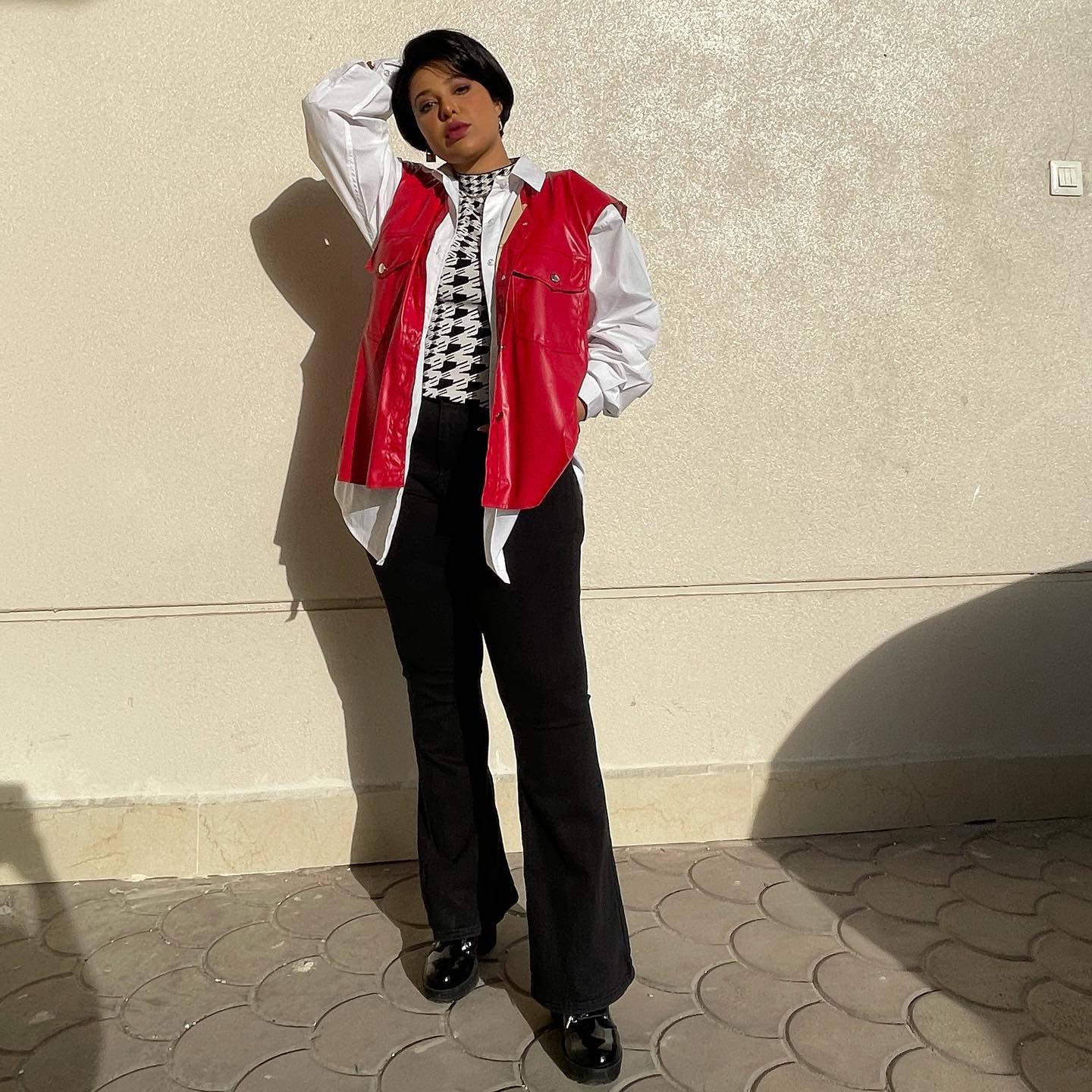 تميزت لولوة الملا بإطلالة لافتة عندما ارتدت قميصاً أبيض واسع الأكمام أسفل سترة جلدية حمراء لامعة، في تناغم مثالي بين الحدة والأنوثة. وقد أضاف البنطال الأسود المستقيم توازناً بصرياً يمنحها رشاقة وأناقة، فيما زادت الأحذية اللامعة من فخامة اللوك.