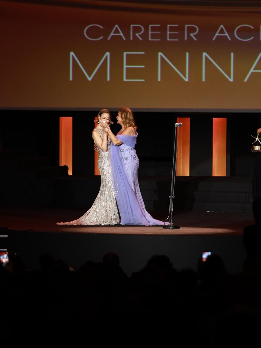 واحدة من أكثر اللحظات المؤثرة في الحفل كانت عندما قدّمت الفنانة الكبيرة يسرا جائزة الإنجاز الإبداعي لزميلتها منة شلبي. كلمات يسرا جاءت مليئة بالفخر والعاطفة حين قالت: