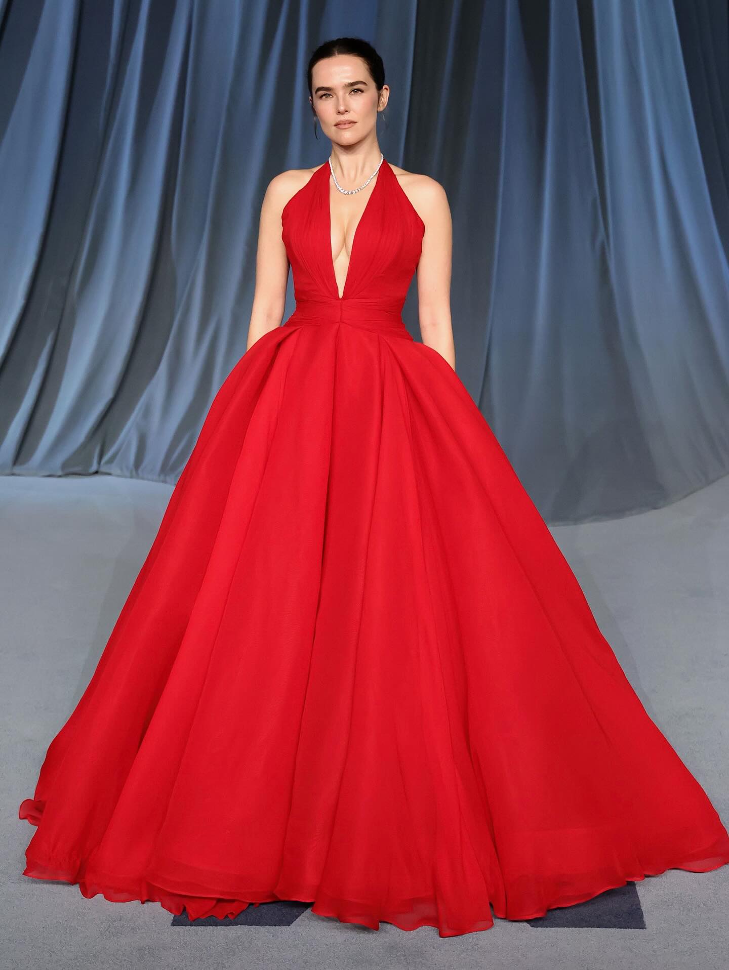 أما راشيل زيغلر فقد تألقت بفستان حريري فوشيا من Tamara Ralph، بخصر محدد وذيل طويل وقفاز مطابق، فيما اعتمدت زوي دويتش ستايل الأميرات بفستان أحمر منفوش من Zac Posen بحمالات رفيعة وفتحة ياقة عميقة، مكملة بإكسسوارات راقية وتسريحة شعر كلاسيكية.