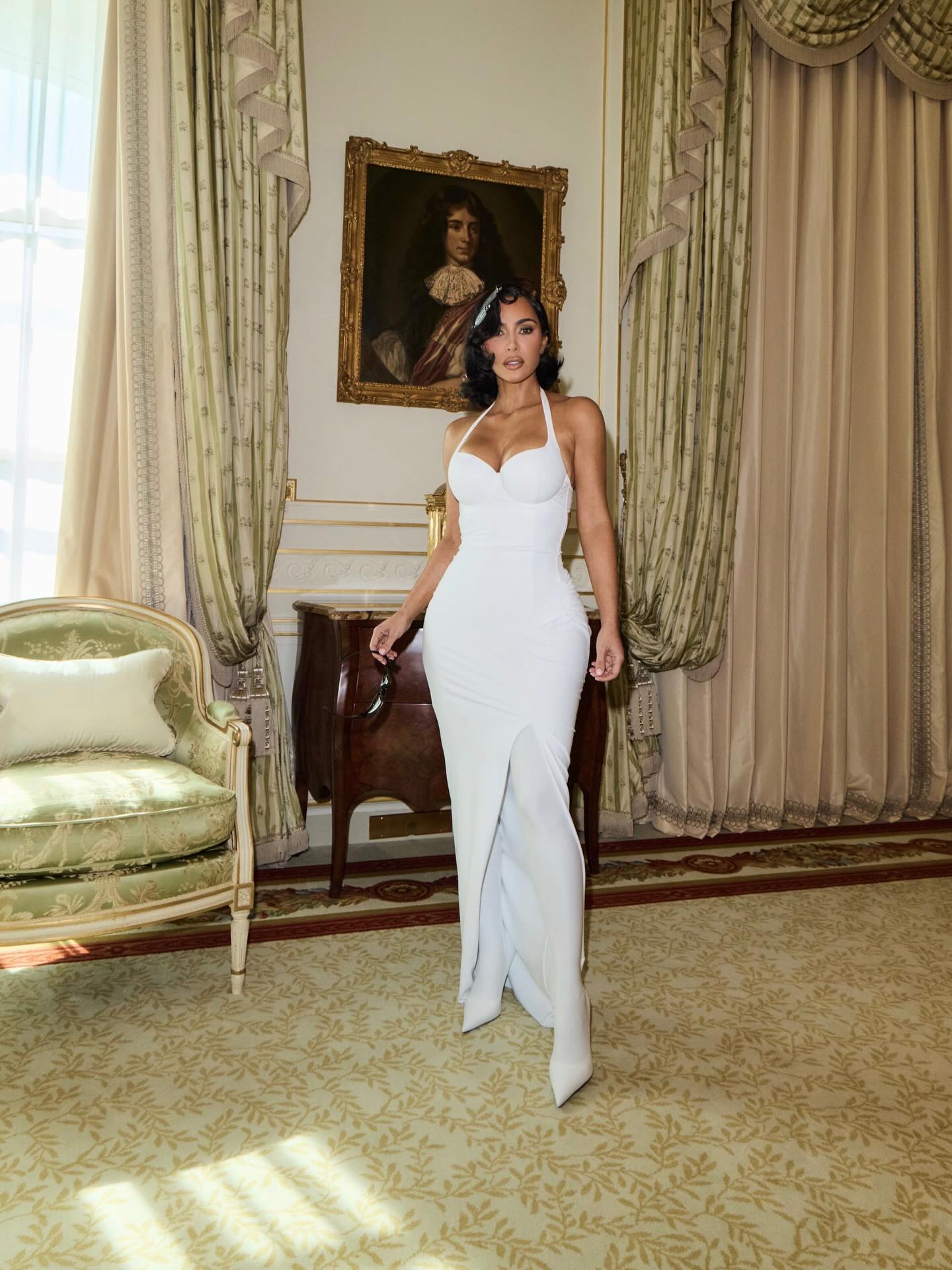 في حفل Academy Museum Gala 2025 بلوس أنجلوس، تألقت كيم بفستان بيج من Maison Margiela بقصة كورسيه ضيقة وأكمام منفصلة كوشاح، مع عقد شوكر متعدد الطبقات، وغطت وجهها بالكامل لتضفي غموضًا على طلّتها.
