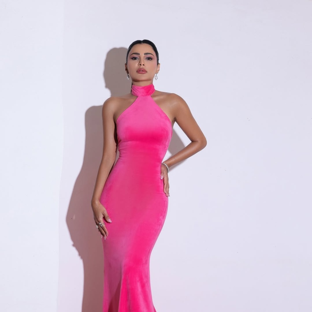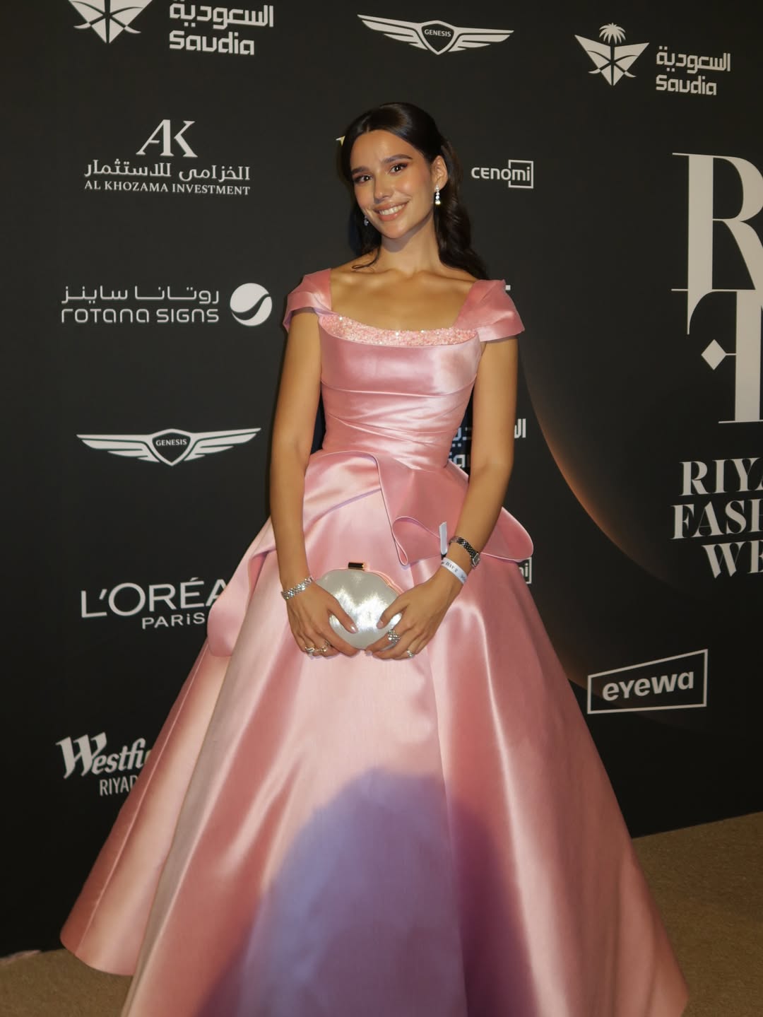في أسبوع الموضة بالرياض، جسدت لمى "عروس الحجاز" بفستان وردي هادئ من Hindamme، بقصة حورية البحر وطرحة مطرزة، مزجت بين الموضة المعاصرة والإرث الثقافي، مع ماكياج عيون جريء وتسريحة شعر رومانسية.