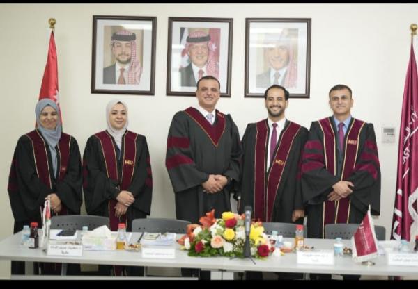 للعلّم - ناقش الباحث خالد قاسم عقيل العزام رسالة ماجستير في القيادة والإدارة التربوية بجامعة الشرق الأوسط.
