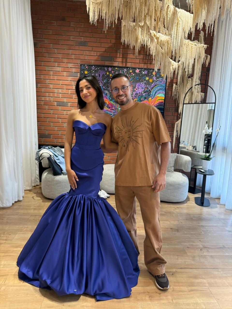 اختيار آخر مميز كان فستانًا بقصة الحورية المجسمة باللون الأزرق الملكي من تصميم اللبناني رامي قاضي، استغرق تصميمه شهرين، ويقدر ثمنه بـ16 ألف دولار. الفستان مصمم من قماش الساتان اللامع، مع لمسة الكورسيه مكشوف الأكتاف بحواف مثنية على شكل قلب وتنورة ضيقة تتسع من الركبتين. نسقت جيسيكا هذا الفستان بأسلوب ناعم بمساعدة الستايليست عمر عبدالغني، مع رفع الشعر على شكل كعكة وترك بعض الخصلات المموجة أمام الوجه، وتزيين الإطلالة بمجوهرات مرصعة بالألماس.