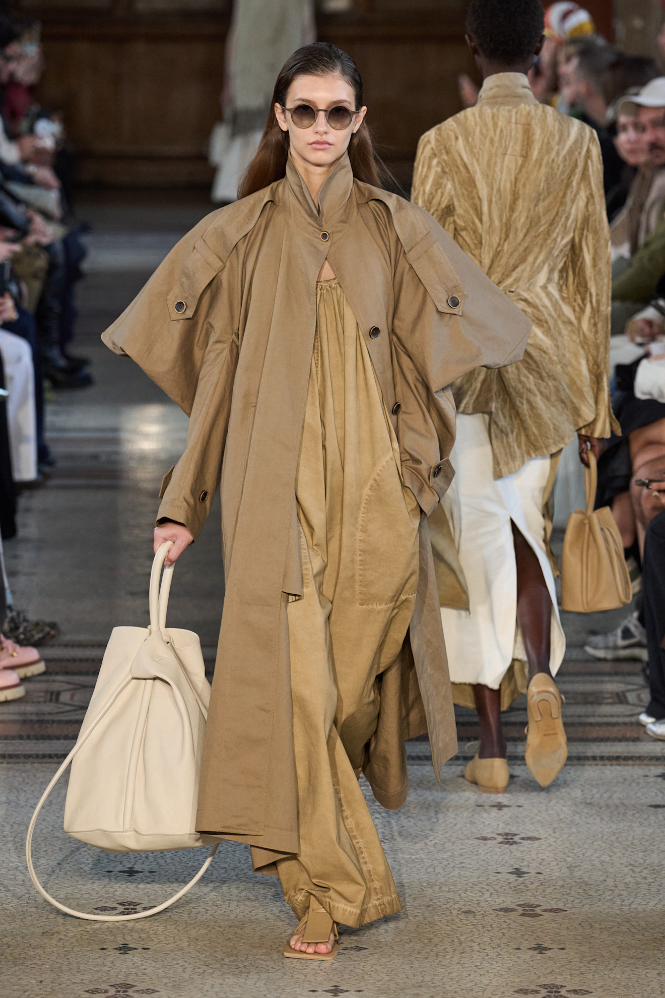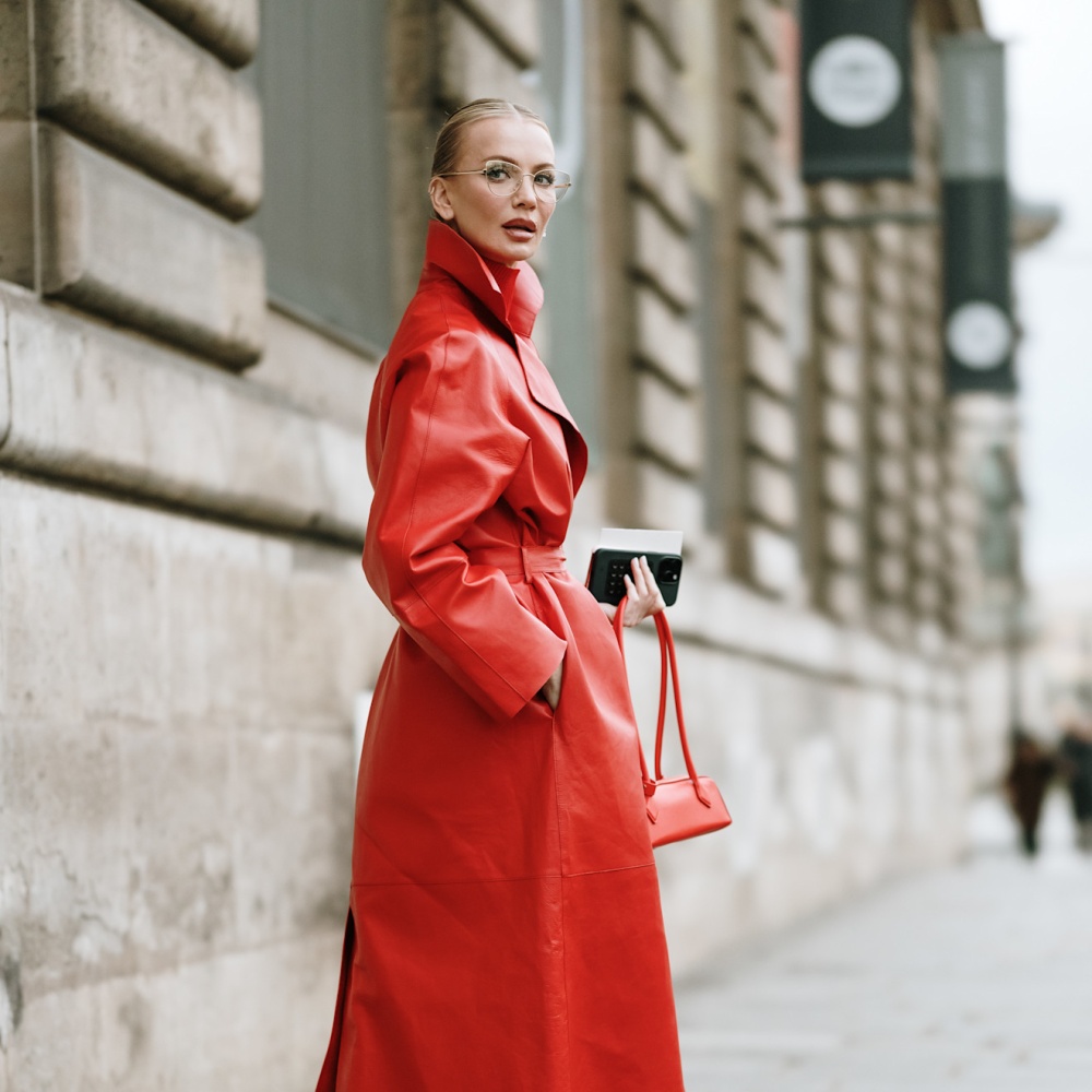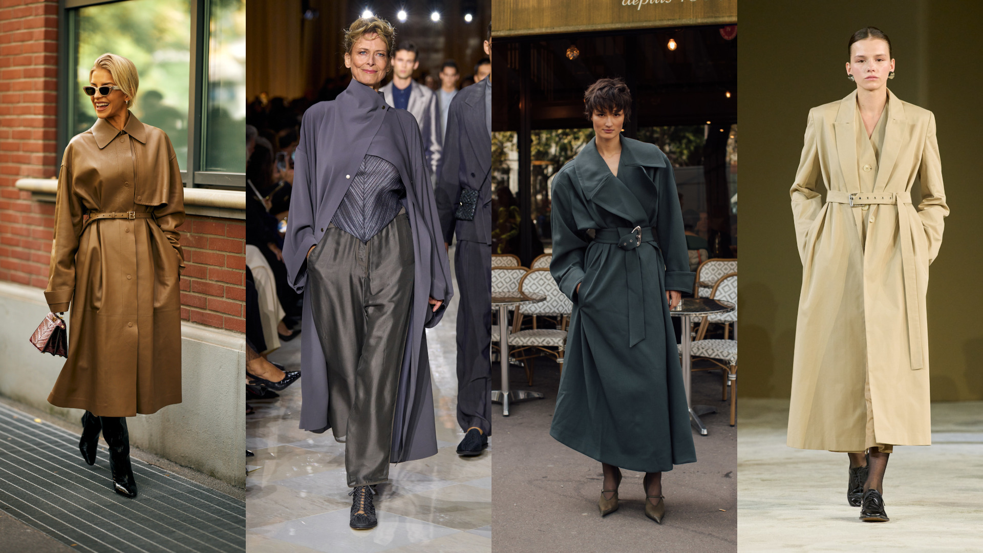 المعطف الكلاسيكي المربوط بحزام عند الخصر هو رمز الأناقة لهذا الشكل.